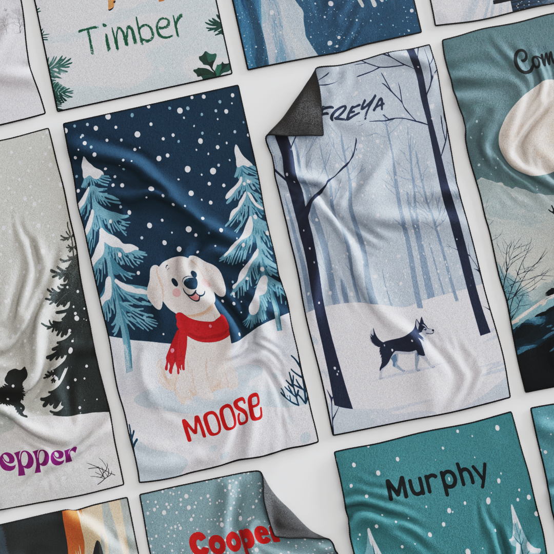 Upgrade your pup's favorite spot in the house with a soft, personalized fleece blanket. Whether it's the floor, the couch, or your bed, add some extra coziness and a touch of fun.