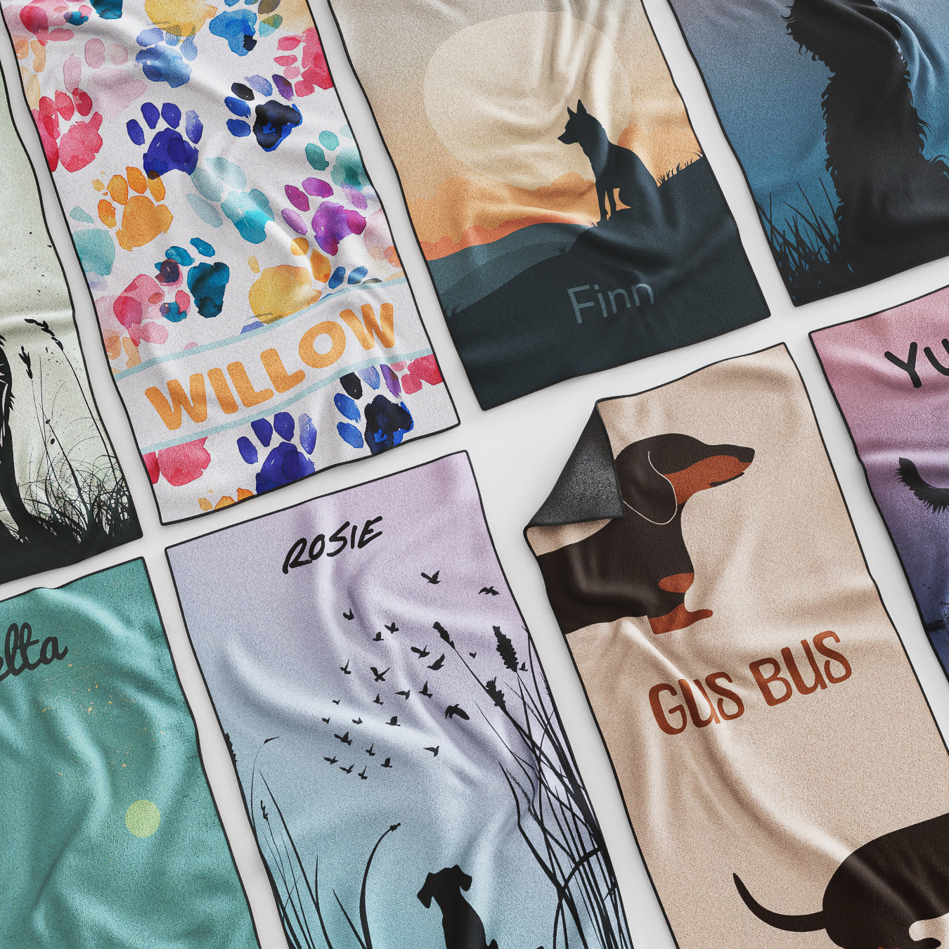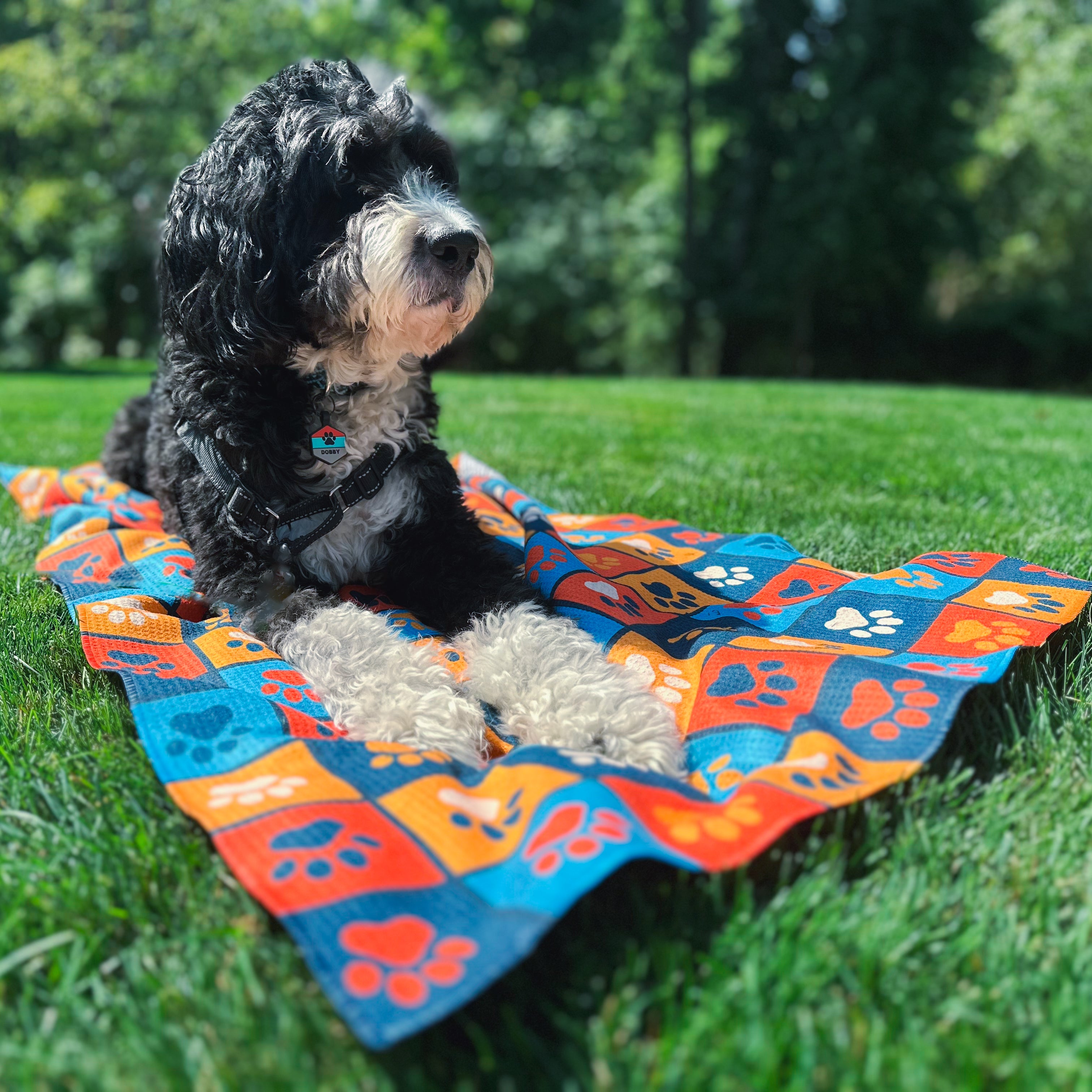 Our beach towels are designed with vibrant, eye-catching colors that stand out when they should. Each towel can be personalized with your dogs name, ensuring every piece is uniquely yours.